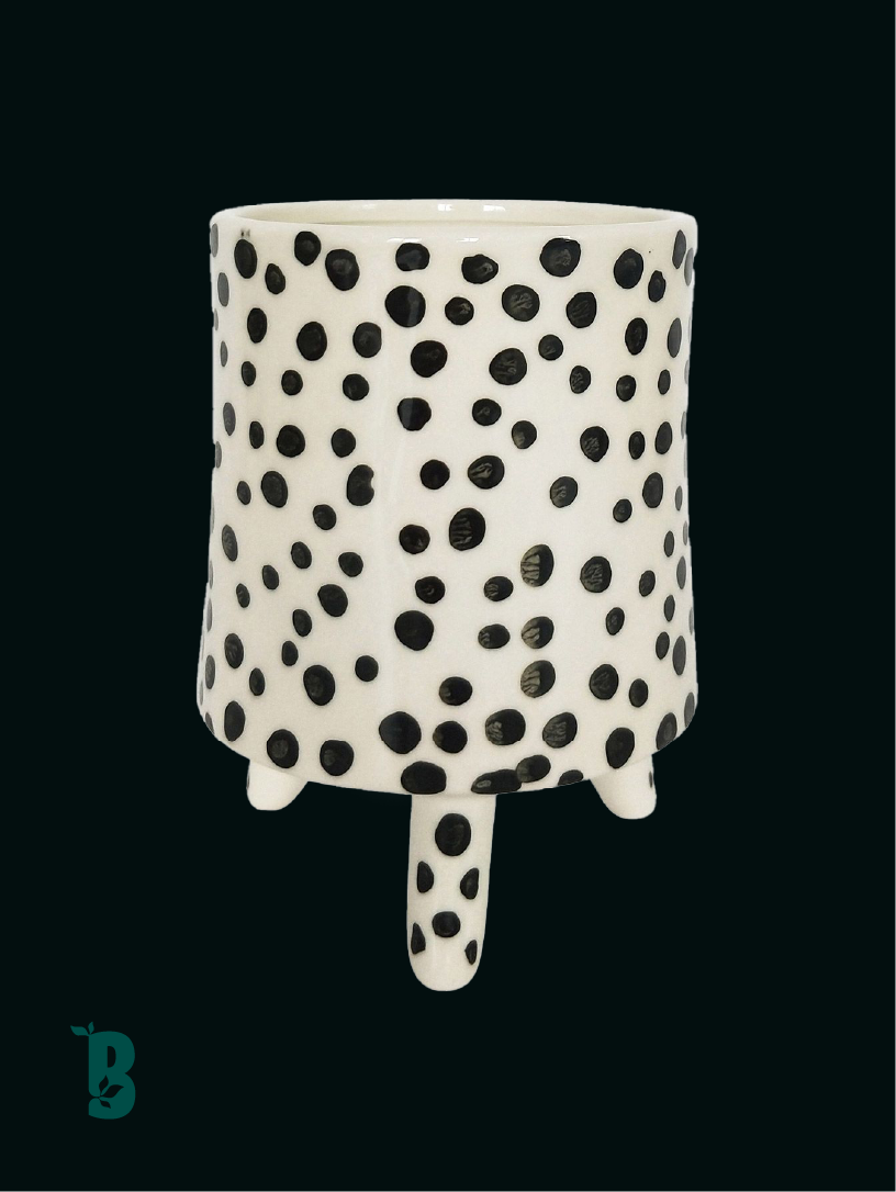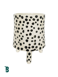 Add a playful pop to your plant collection with the Speckled Stilt Planter. This 9.5cm white planter, adorned with charming black dots and perched on little legs, is a perfect blend of quirky and chic. Its unique design makes it an eye-catching base for your favourite greens, adding character to any space with ease.